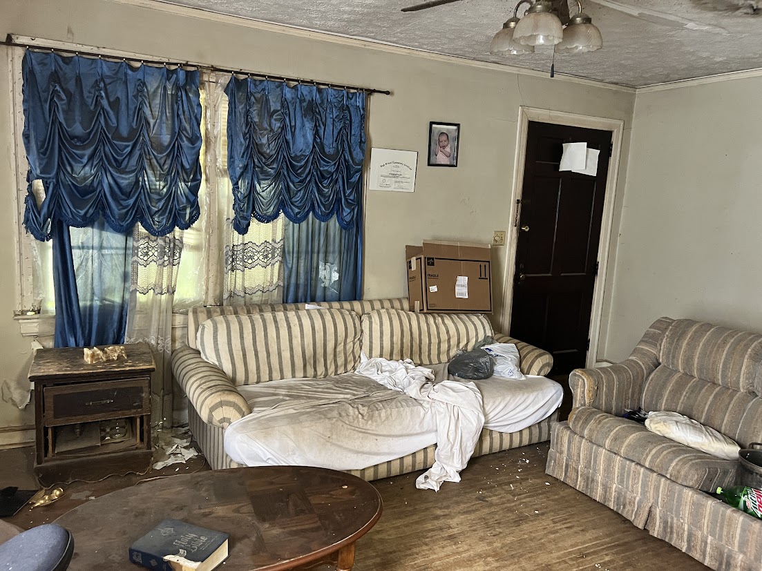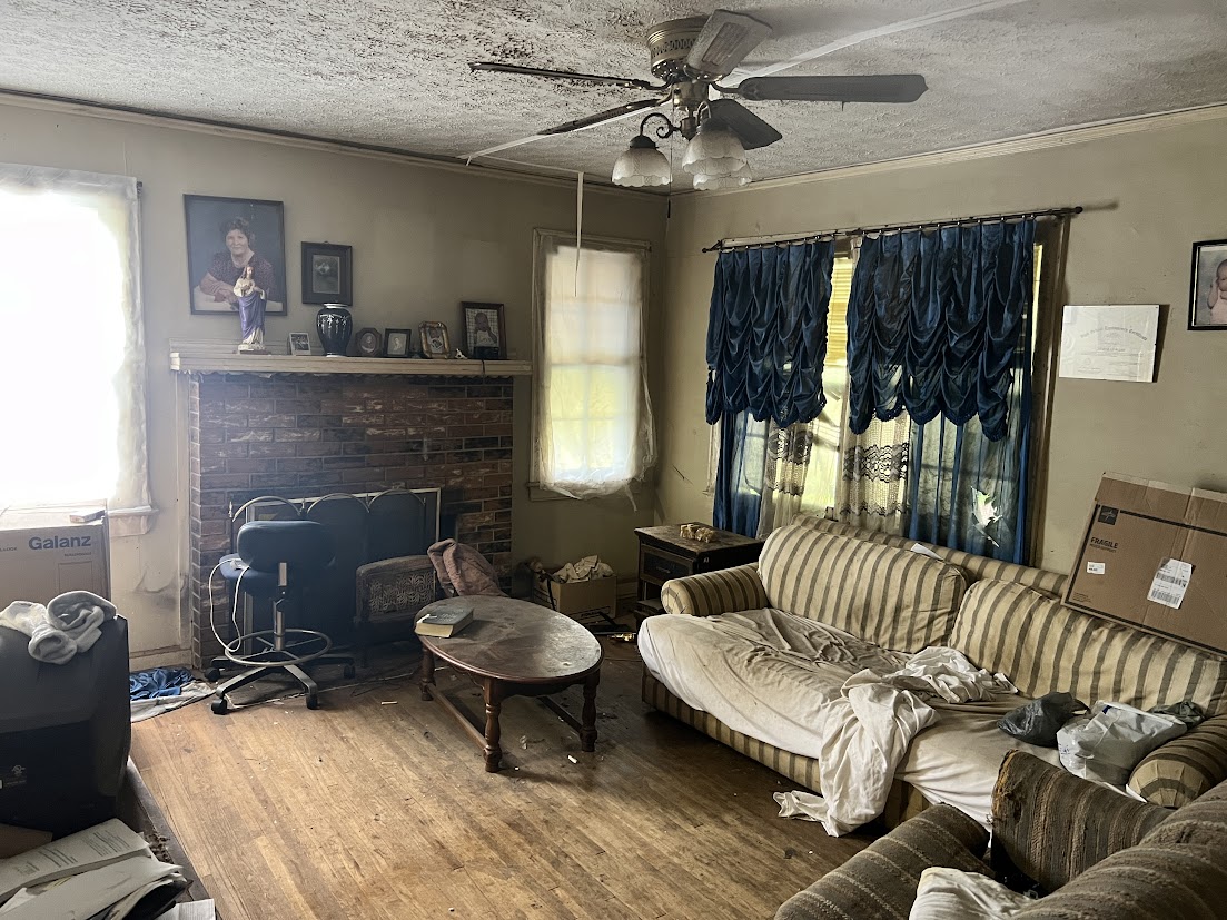2 Beds, 1 bath home with 2 bonus rooms upstairs, converted from the attic, totaling 1088 sq ft on a .17-acre lot, this SFH requires a complete renovation including exterior siding, roof, and HVAC installation. Features a slabbed workshop with power, perfect for a variety of uses. Ideal for investors or those looking for a renovation project. Priced to sell quickly! Sold As-is. Cash or Conventional only.