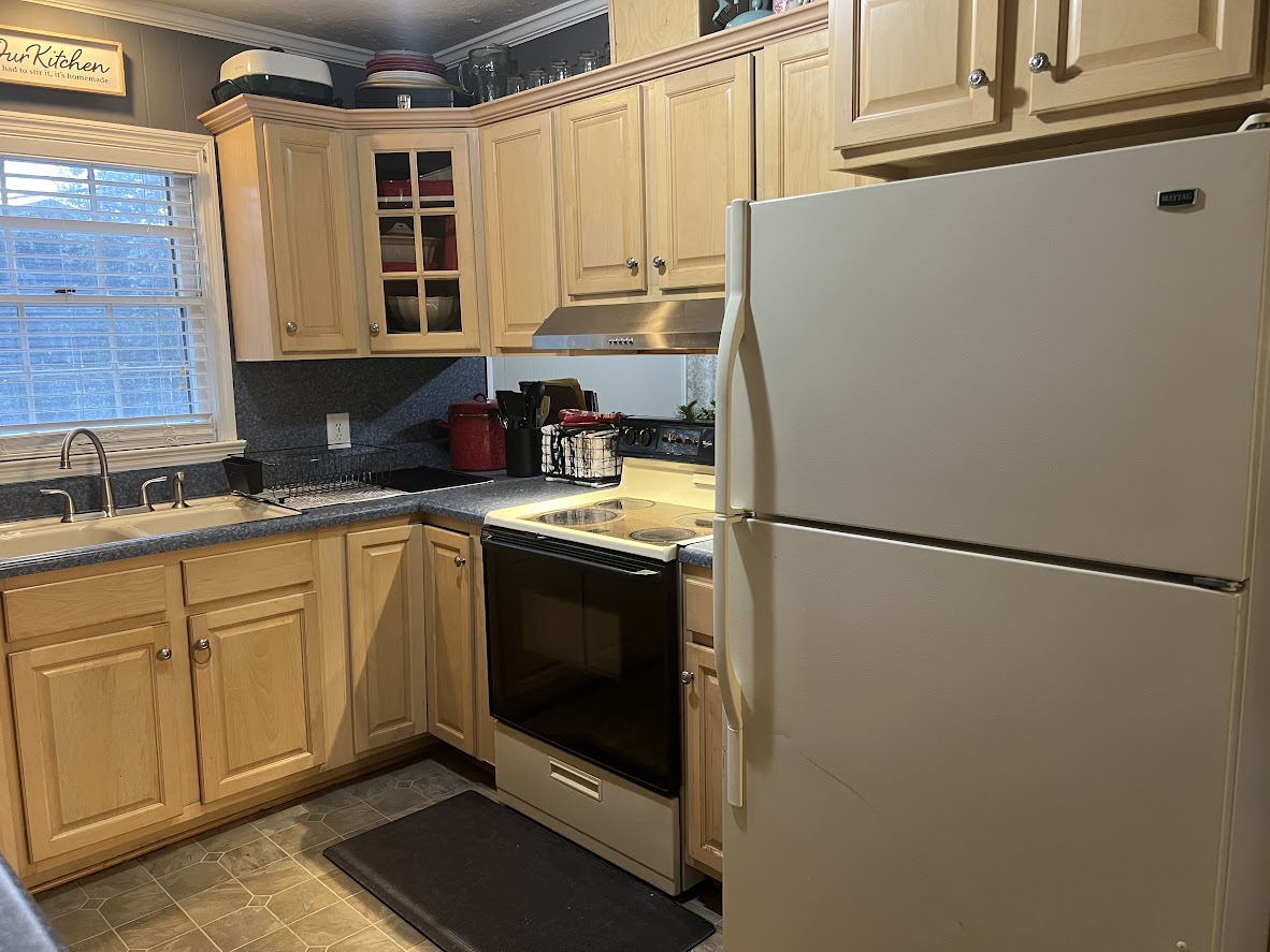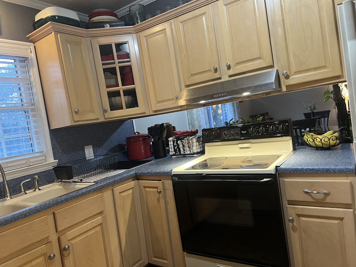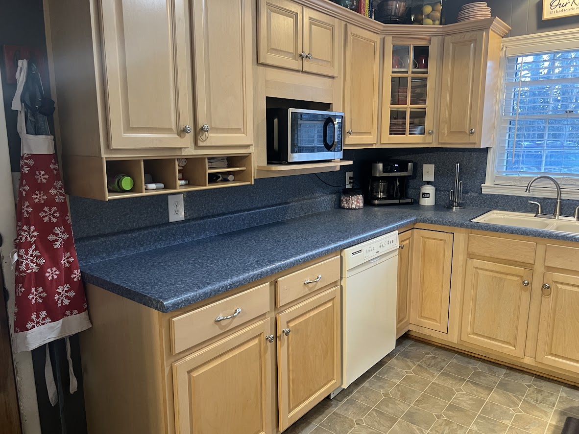 Kitchen has solid cabinets and laminate countertops