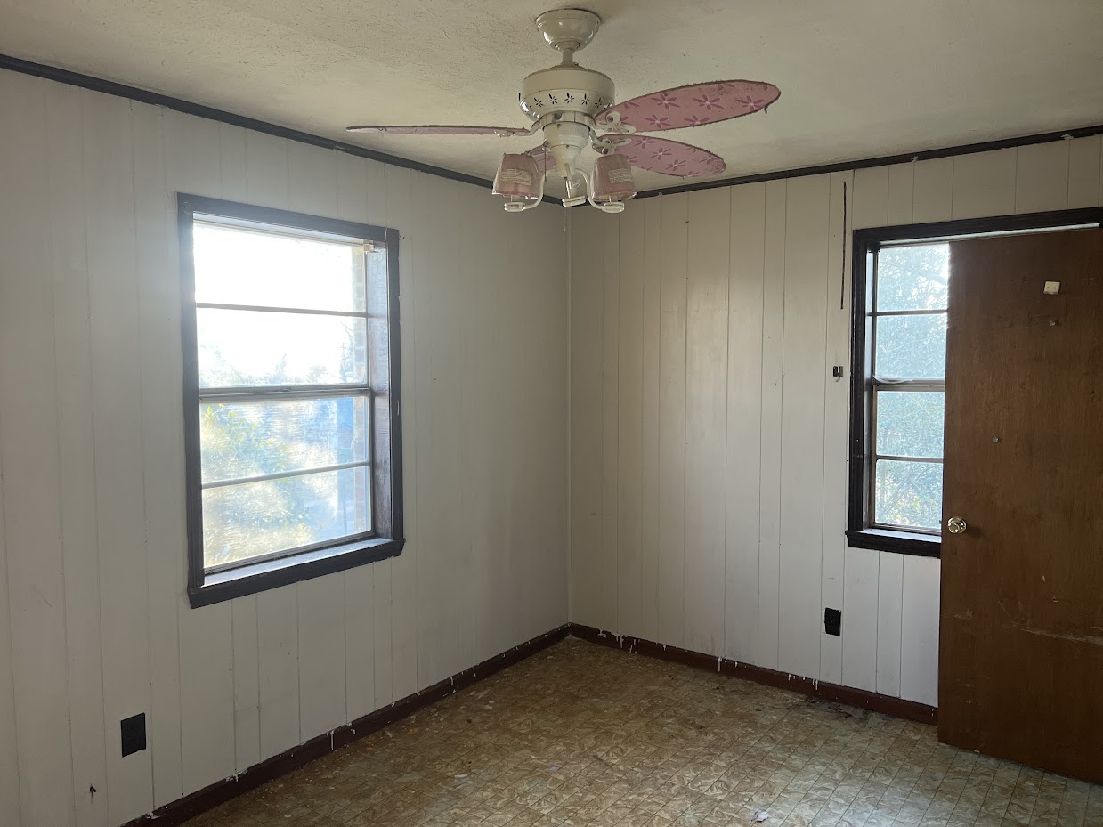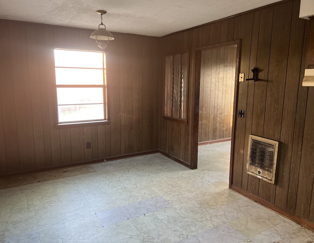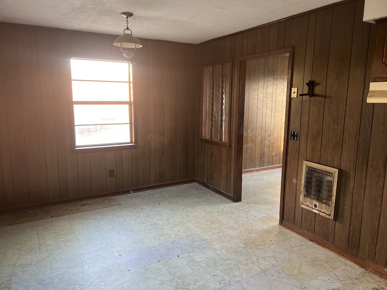 Inside, the home features a large kitchen and a straightforward layout. The current flooring is mostly linoleum, and the interior will benefit from fresh paint and updated flooring. The home is currently using window units and wall heaters, so adding central HVAC is optional depending on your rental strategy.