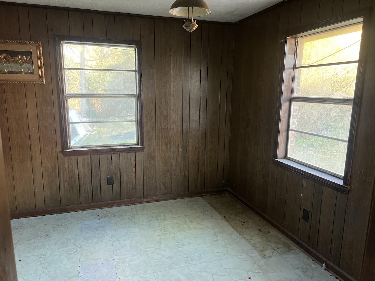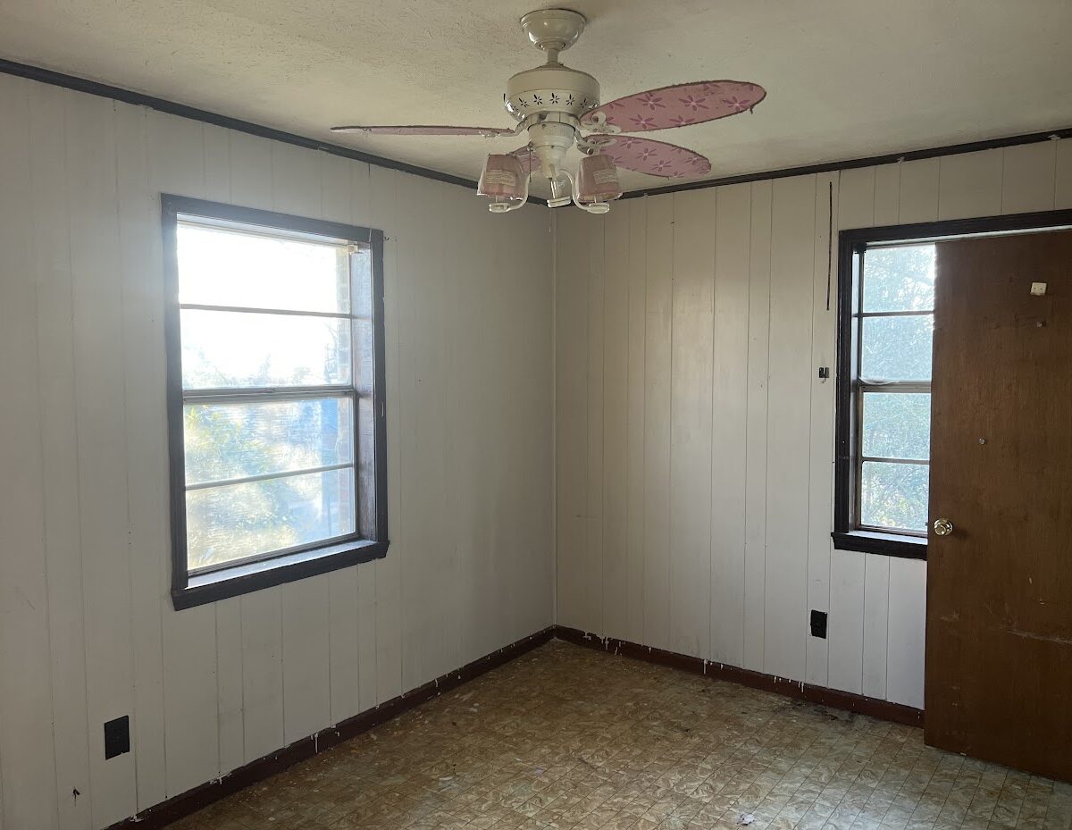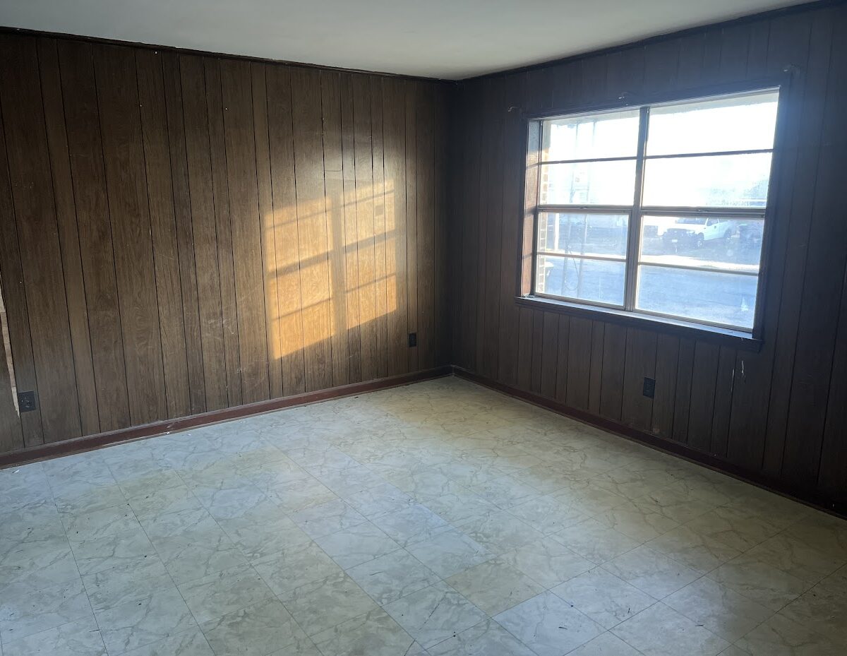 Inside, the home features a large kitchen and a straightforward layout. The current flooring is mostly linoleum, and the interior will benefit from fresh paint and updated flooring. The home is currently using window units and wall heaters, so adding central HVAC is optional depending on your rental strategy.