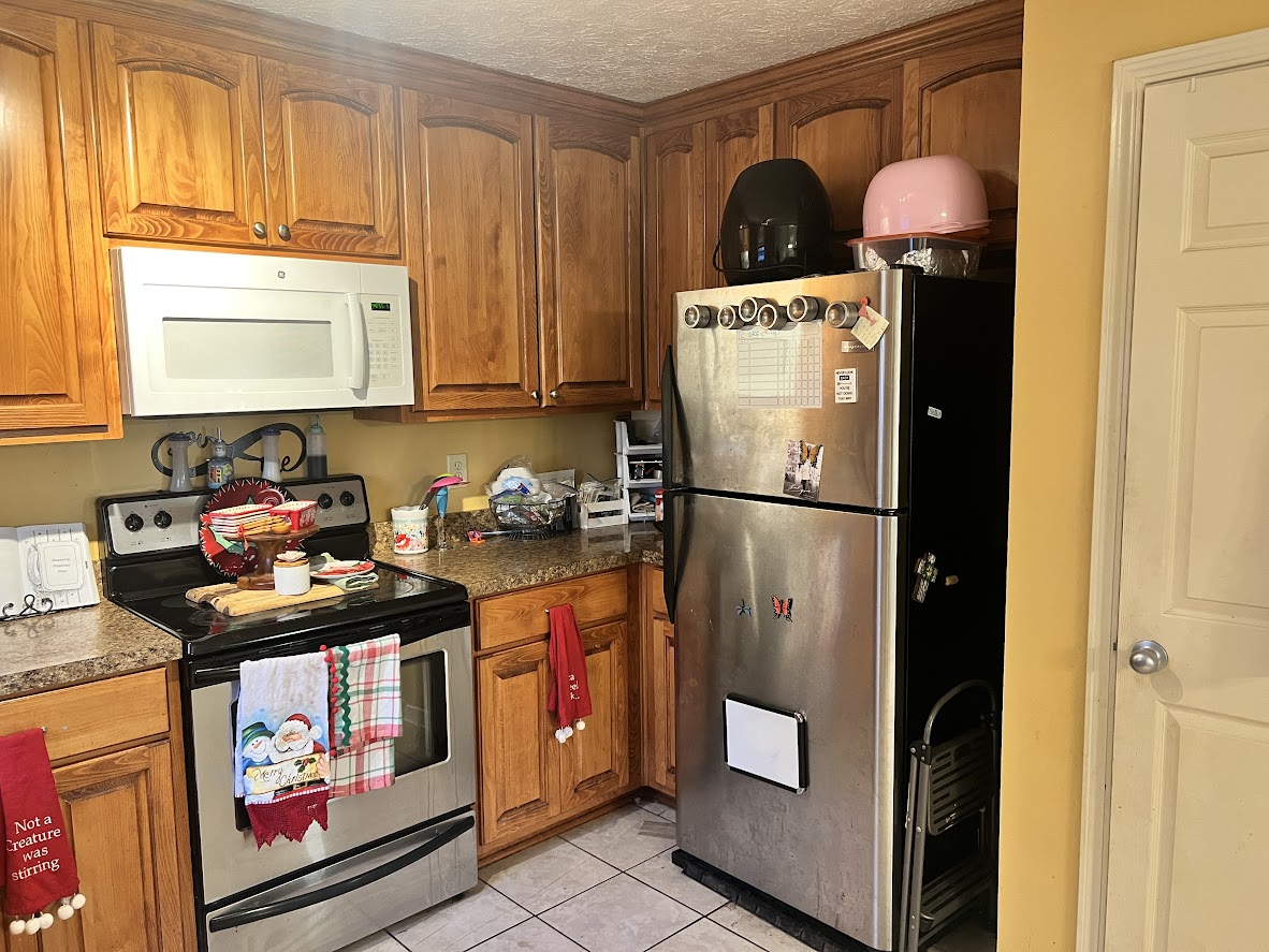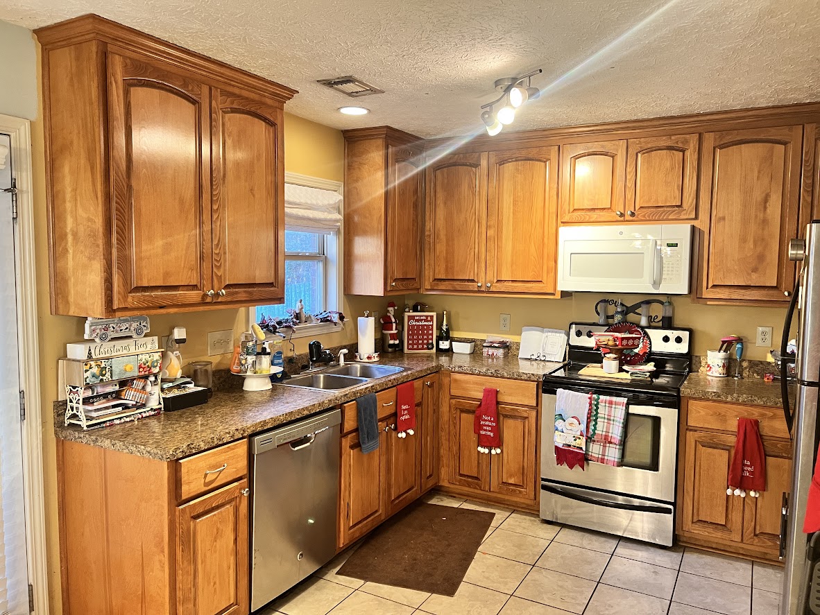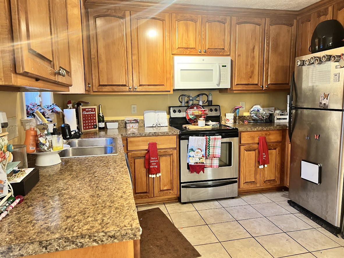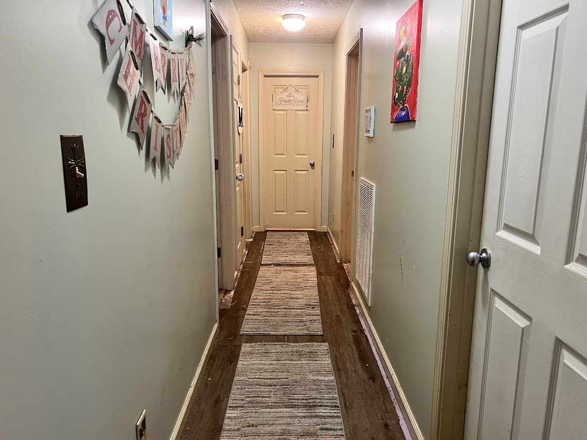 - Flooring: Tile in kitchen and baths, LVP in living areas (hallway needs to be redone), carpet replacement needed in bedrooms