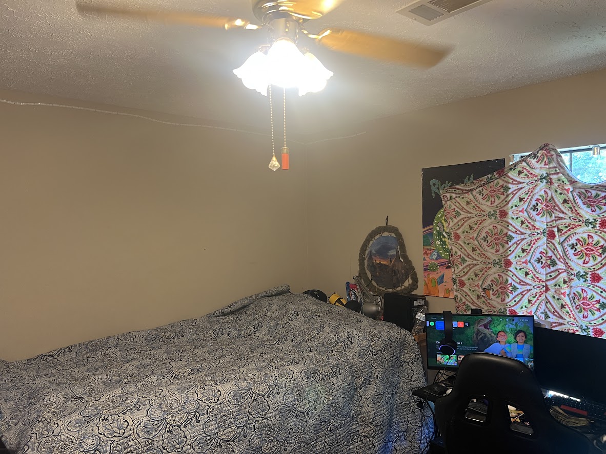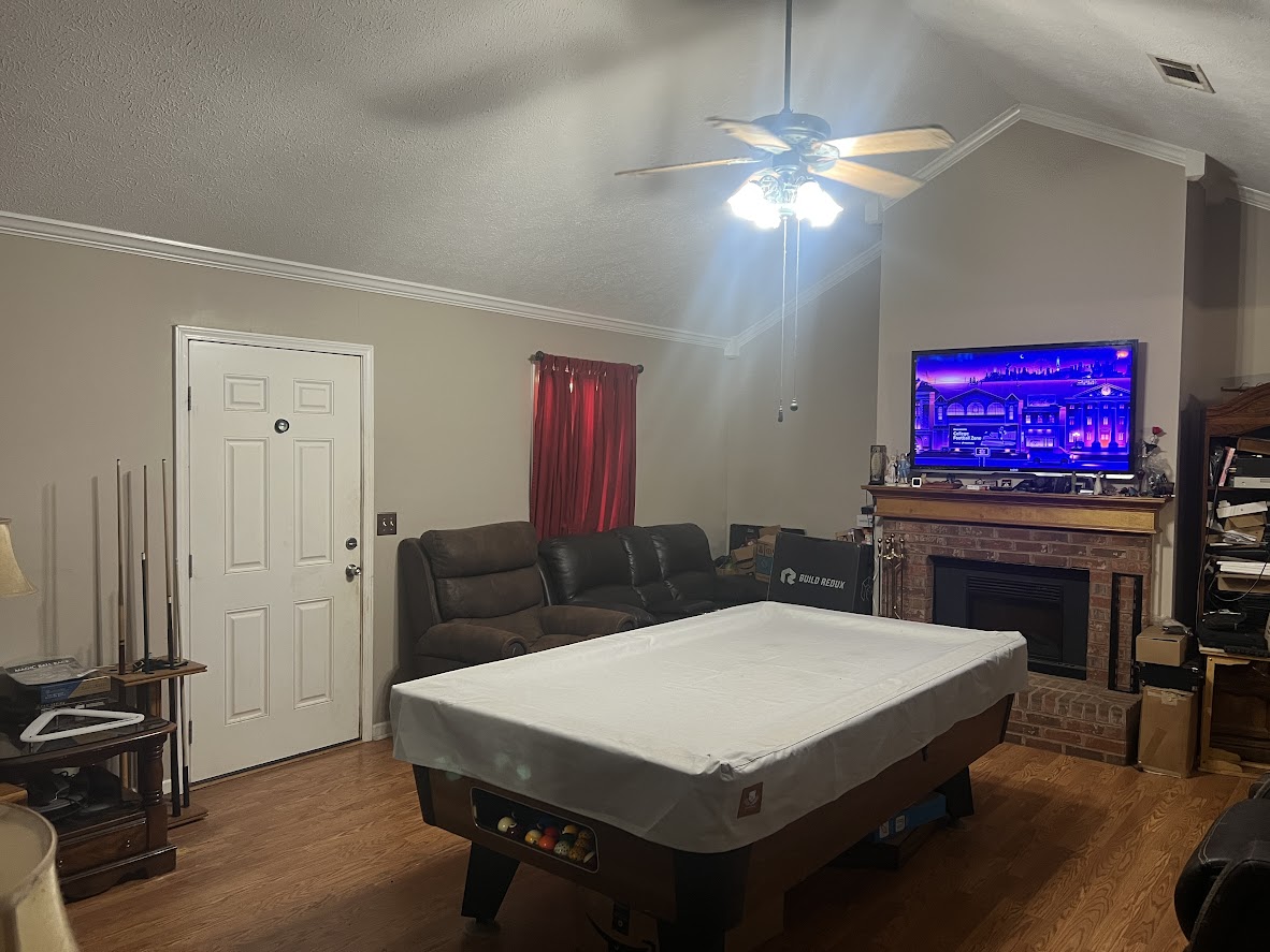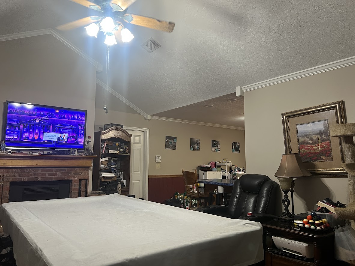 The master suite is oversized with a jetted tub, while the walk-in shower needs replacement. Outside, you’ll find large covered parking and a secure storm/safe room in the guest bedroom. The lot also includes a mobile home setup in the back (with power & septic), ideal for additional income if replaced with a livable unit.